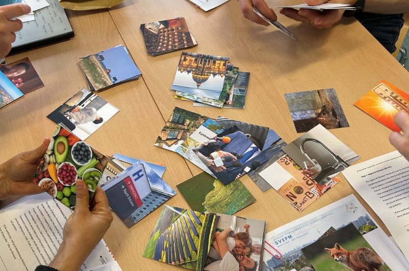 Um die eigene Region einmal mit neuen Augen zu sehen, arbeiteten die Teilnehmenden mit Bilderkärtchen, die typische Landschaften, Infrastrukturen oder gesellschaftliche Szenen zeigten. Dadurch konnten sie sich intuitiv in die Bedingungen ihrer Heimatregion hineinversetzen.